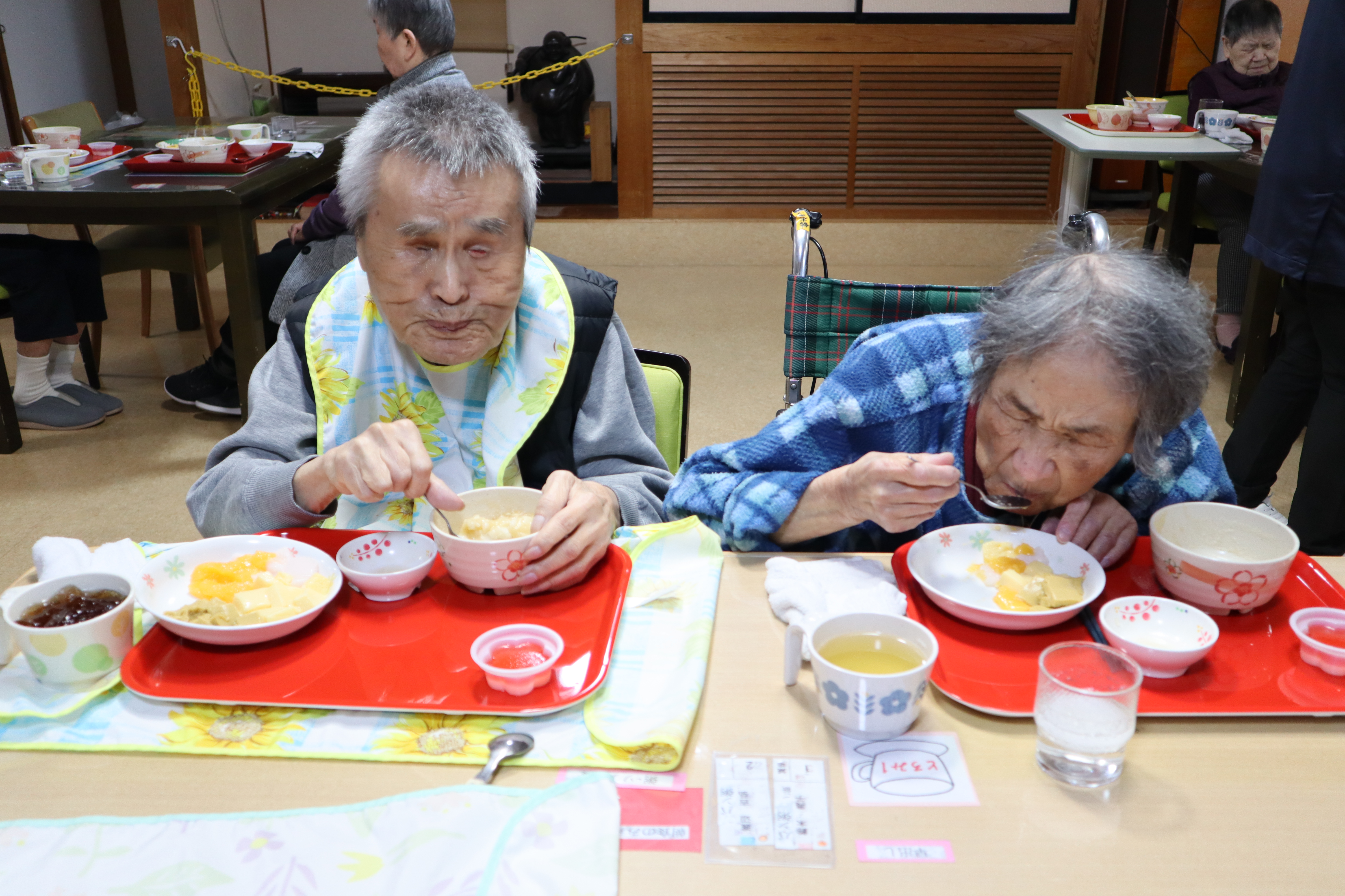 「いつも助成金をいただきましてありがとうございます。」「お蔭様でお正月も美味しいおせち料理と温かなお雑煮といった新年を祝う食事をいただきありがとうございました。」「新年の料理やタオル、ゲーム後の飲み物までありがとうございました。」「飾りからおせち料理と無事に新年を迎えられてよかった。長く生きてみるものだと思った。」