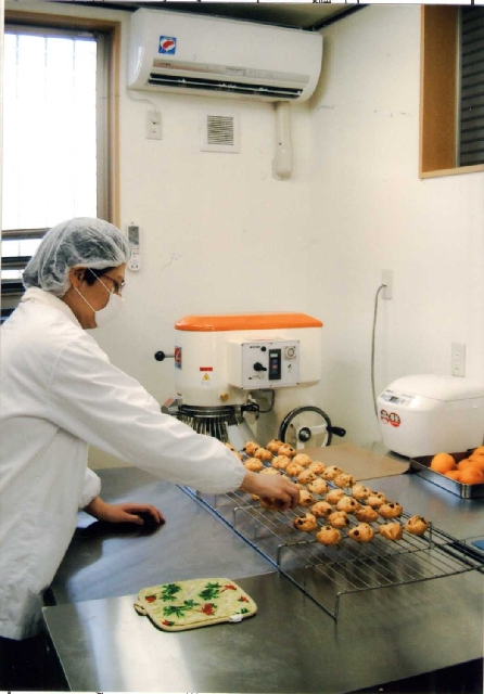 2月に増築した「きらら」のパン工房ではパンを焼いたりデザートを作ったり、利用者と職員が笑顔で楽しく作業をしています。