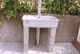回収後、油で汚れたポリ容器を洗っていますが、排水設備がないため、垂れ流しているのが現状で、環境汚染を心配していたところ、赤い羽根共同募金から助成金を頂けることになり、屋外流し新設工事で、流し台、給排水が設置されました。