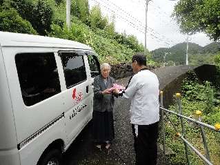 どうぞ、この赤い羽根のマークがついた社会福祉協議会の車両が近くを通りましたら、お声をかけて下さい。皆様の募金が地域の役に立っています。