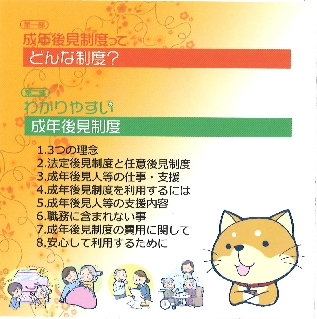 助成金をいただいて、わかりやすい成年後見制度のDVDを作成しました。成年後見制度は難しいと考えられがちですが、とてもかわいいDVDに仕上がったので、楽しく制度を知ることができると好評です。 多くの人に制度をしていただくことで、必要な人が制度に繋がりやすくなります。このDVDをきっかけに、成年後見制度に興味を持って下さる方が増える事を期待しています。 ありがとうございました。